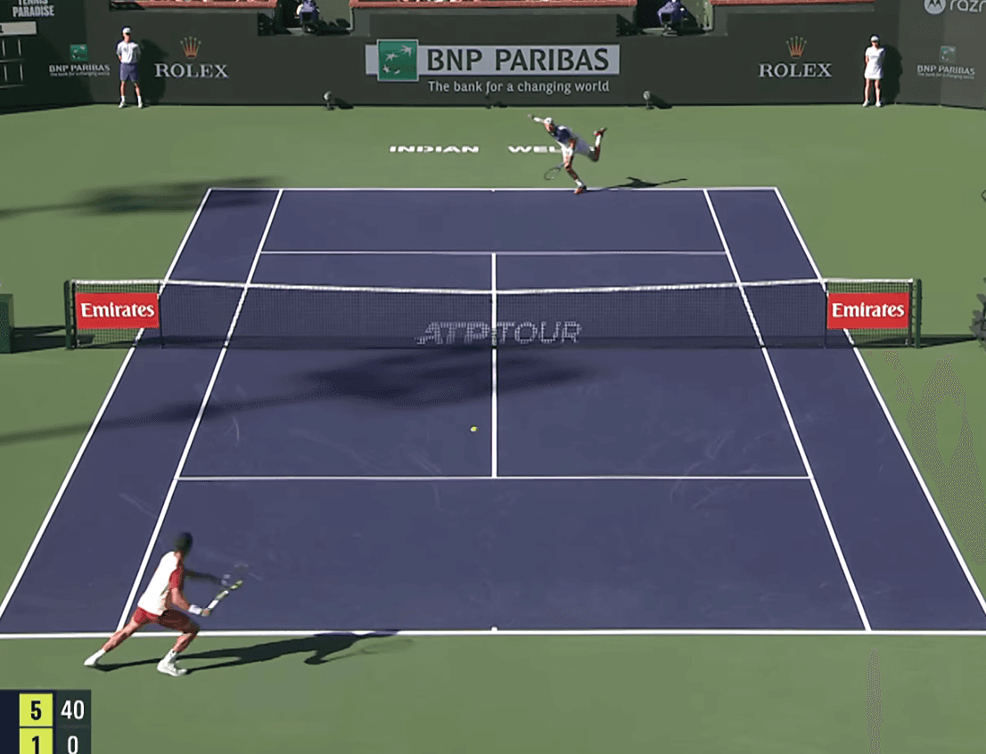 The fourth is a thunderous shot down the line. If you’ve got Alcaraz in this position (above), you’ve done very well.