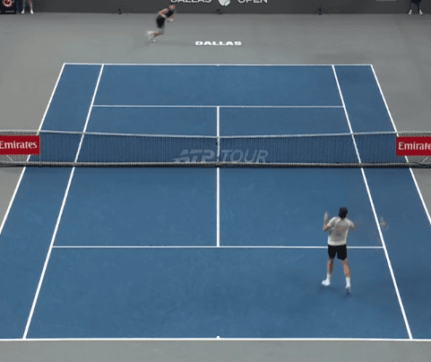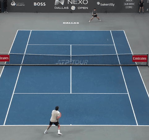 After the first seven games in Dallas were mostly a breeze for Fritz, Shelton seemed to make him think a bit more when serving for the set at 5-3. Shelton backed up on second serves, got into more rallies, and put the pressure on. But Fritz kept his head after a couple of mistakes and held serve to take the set without losing a point on his first serve.